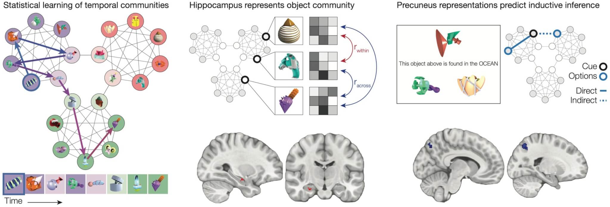 In our newest preprint, we find that the hippocampus and precuneus represent hidden structures underlying events; this may facilitate inductive inference based on event relationships! Learn more here.